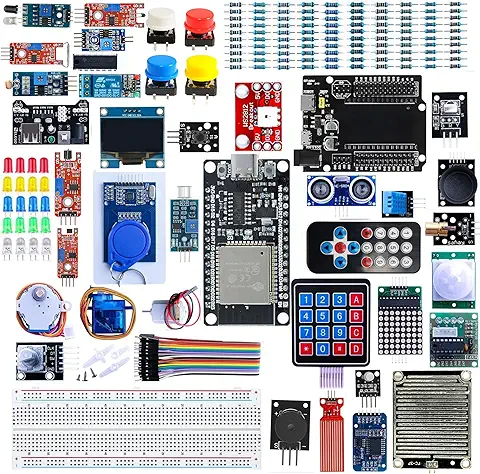 DIY Wireless IOT Ultimate Starter Kit with ESP32 Controller Board with C-Type Interface & Expension Board | 40+ Project Online Tutorials | Compatible with UNO, RPi, ESP32, | 42+ Components